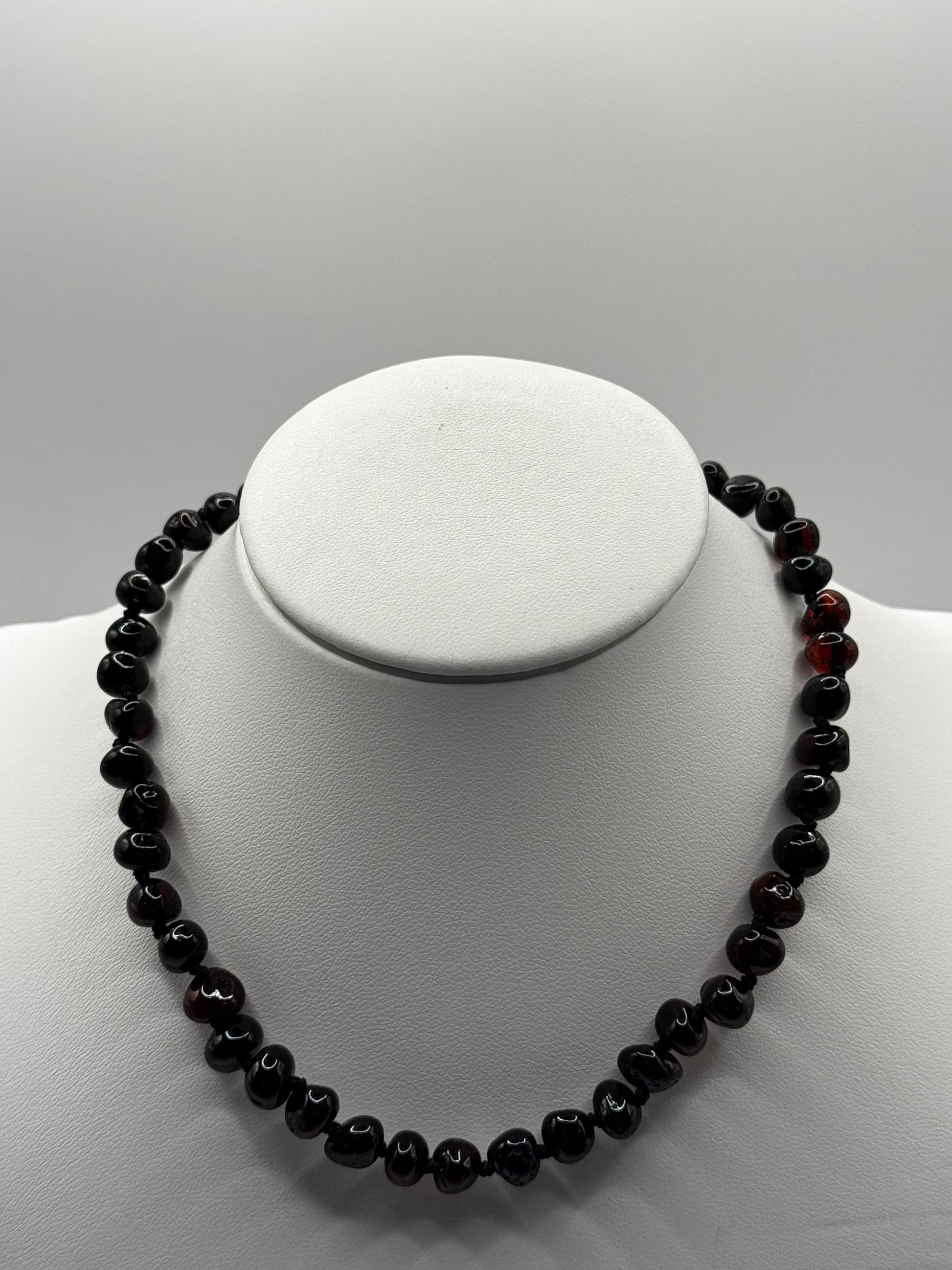 🖤🖤This polished Baltic amber necklace features deep cherry amber beads, handmade in Lithuania. It is believed to provide natural relief for teething discomfort and promote a sense of calm.